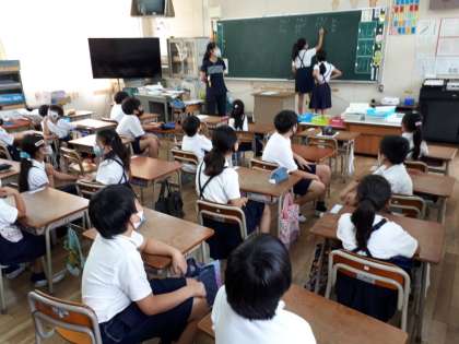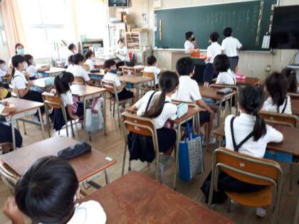 今日は11月5日(木)に予定している「なかよしフェスタ」で、どんなお店をするのかを話し合いました。なかよし学年の1年生と6年生、2年生と4年生、3年生と5年生が集まって、高学年がリードしながらいろいろな案を出しました。例年人気のある「迷路」や風船を使った遊びなどは、密になったり飛沫感染の可能性があったりすることから、どんなお店がいいのかを話し合いました。