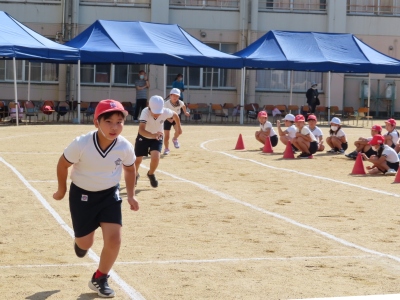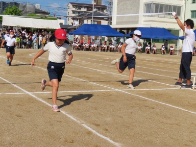 最初の競技は、3年生で個人走「レッツゴー 3年!」です。