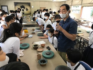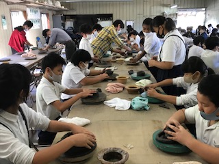 10時10分、昨年度から取り入れている信楽焼の「手ひねり体験」の実習です。係の方から説明の後、「世界にひとつ」しかない思い思いの作品をつくっていきました。