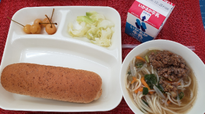 10月16日(金)のこんだては、「ライ麦パン、タンタンめん、キャベツの甘酢づけ、さくらんぼ(缶)、牛乳」です。