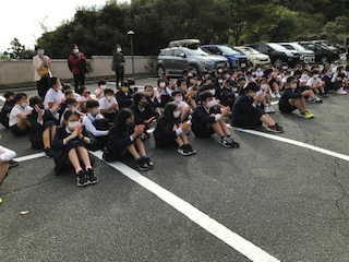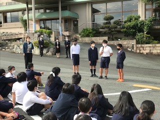 8時45分、ホテルの駐車場で「退所式」を行いました。児童代表が「小学校生活最後の宿泊行事で最高の思い出になりました。」とお世話になったホテルの方に感謝の気持ちを伝えました。