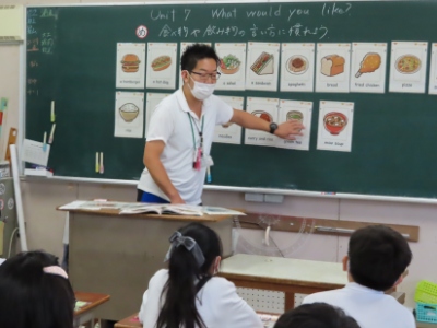 10月20日(火)6限、5年生では外国語「What would you like?」(何がしたいですか?)の学習でした。本時のめあては、「食べ物・飲み物の言い方に慣れよう」です。