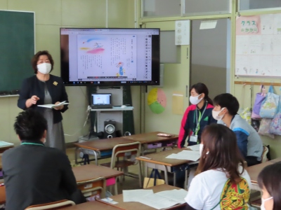 今日は2年生国語科の教科書「名前を見てちょうだい」を題材に、「音読指導の基礎基本」について学びました。一人ずつ音読をし、研修を深めました。明日からの子どもたちに指導に取入れていきます。