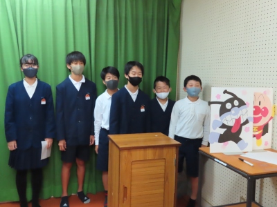 10月22日(木)始業前、今年度初めての「児童集会」をテレビ放送で行いました。これまでは、毎木曜日に体育館で集会をしていましたが、コロナ禍により、今日からスタジオから放送することになりました。