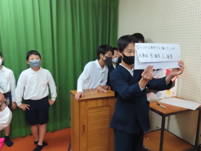 今日は、集会委員会の児童が企画した「三択クイズ」です。1問目は「イカの心臓は何個あるでしょうか」、2問目は「クラゲの漢字はどう書くでしょうか」、3問目は「長吉小学校は何人の児童がいるでしょうか」です。こたえは、折りたたみ記事をご覧ください。