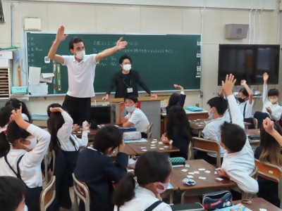 10月23日(金)1限、4年2組は「外国語活動」の授業でした。金曜日はC-NET(大阪市外国人英語指導員)の先生が来てくれています。