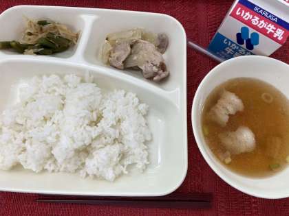 10月26日(月)のこんだては、「ごはん、鶏肉のゆず塩焼き、ソーキ汁、もやしとさんどまめの甘酢あえ、牛乳」です。