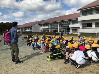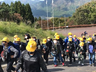 11時20分、長そで、長ズボンに着替えて、「避難訓練」<>を/b行いました。やすらぎの間の窓から出て、「はつらつ広場」に集合しました。