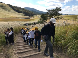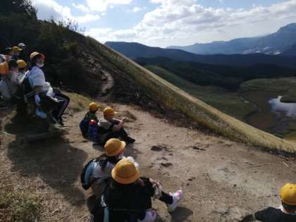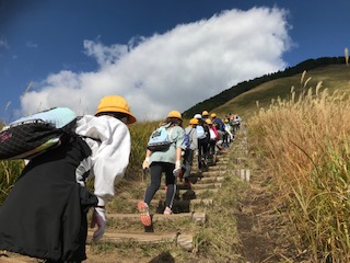 12時30分、最初のプログラムの「山登り」に出発しました。亀山峠を目指して、がんばって登っています。
