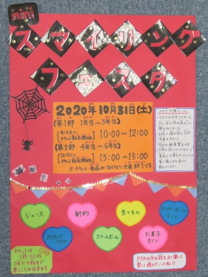 10月30日(金)、明日は本校の講堂や廊下などで、「PTAminiスマイリングフェスティバル」が開催(雨天決行)されます。
