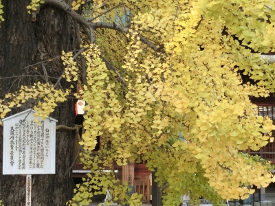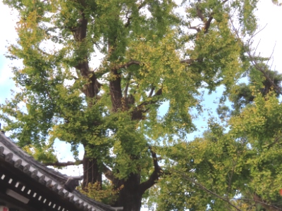 12月1日(火)、大阪府天然記念物に指定されている銀杏(イチョウ)は、見事に黄葉しています。「旭神社」(平野区加美正覚寺 写真左)のイチョウは樹齢400年で、別々に育ってきた3本の樹がいつの頃からか寄り添い、融合して一本の樹となって時を重ねています。