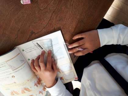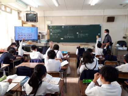 大型ディスプレイに映し出された書き方を見て、三角定規を動かしながら平行な直線が引けるようになりました。