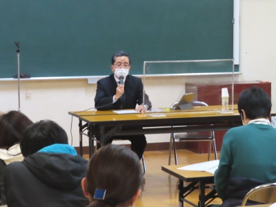 2月3日(水)放課後、大阪市のスクールロイヤーによる、先生版の出前授業「教職員向け研修会」を実施しました。「大阪市版スクールロイヤー事業」は、平成31年4月から始まり、弁護士だけでなく、臨床心理士や医師、ソーシャルワーカーなどの専門家で構成されており、多面的に学校の課題に対応しています。