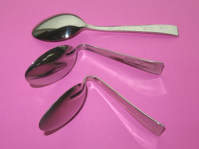 そのスプーンが、曲げられて戻ってきた【写真中】ので、先週のうちに教育委員会から不足分を借りてきました。校長先生は大阪市の学校や教育委員会で45年間勤めてきて、大阪市が大好きです。大阪市の備品が傷つけられるということは、とても悲しいです。