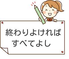 1月は「い」そいで、2月は「に」げる、3月は「さ」ると言われるように、3学期はあっという間に過ぎていくので、今の学年をしっかりまとめ上げることが大事です。「終わりよければすべてよし」ということわざは、今のこの時期にぴったりで、最後をきちんとやることで、この3学期やこの一年間がすべて良かったとなります。ことわざのとおり、「最後の締めくくり」をきっちりしていきましょう。