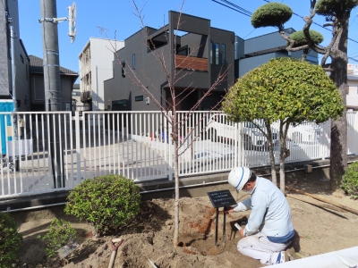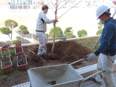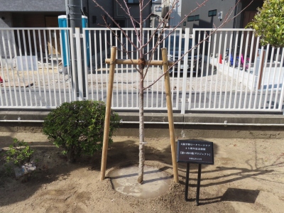 3月1日(月)午前、令和元年12月に大阪平野ロータリークラブから「思い出の桜プロジェクト」で寄贈いただいた桜の木を1本移植しました。