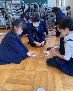 2年生の生活科の学習で、「動くもおちゃ作り」があります。その時に作ったおもちゃで、1年生を招待して遊びました。1年生は、グループに分かれて、お店を回り、楽しく遊んでいました。2年生は、やり方を優しく教えてあげていました。どのおもちゃも上手に出来ていて、工夫もしてありました。最後に1年生におもちゃをプレゼントして終わりました。