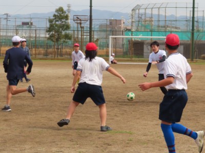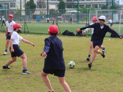 「がつがつコース」には、女子も一人入って、がつがつ?と天然芝のフルグランドを走りまわっていました。時には鋭いシュートを放ち、得点をあげていました。普段はできないような広いグランドのため、中にはバテバテの児童もいました。