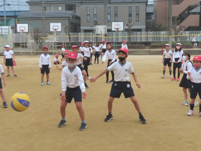 準備体操を行った後、前半は「チーム対抗リレー」で、4チームに分かれて、2年生と4年生が組んで、リレーを行いました。2年生がリレーをするのは、体育参観の練習以来ですが、バトンを上手にもらっていました。後半は「チーム対抗ドッジボール」で、2年生は4年生をめがけて、おもいきりボールを投げていました。4年生は2年生に、とても優しく接していました。