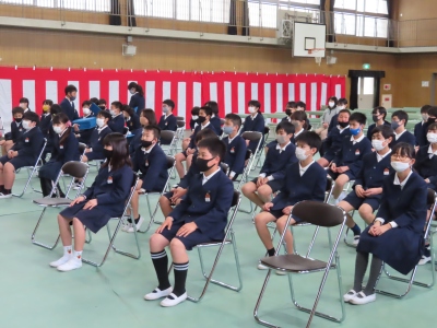 入場、卒業証書授与、旅立ちのことば、退場を通しで行いました。緊張してぎこちないところも多くありますが、真剣に練習を行いました。明日は10時から、予行を行います。