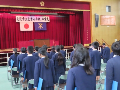 3月16日(火)5・6限、6年生は講堂で「卒業式」通しの練習を、初めて行いました。