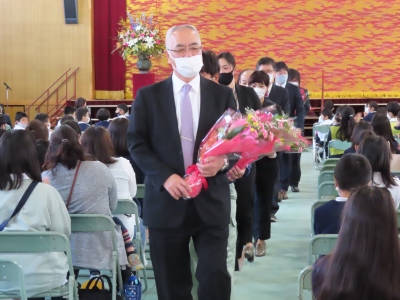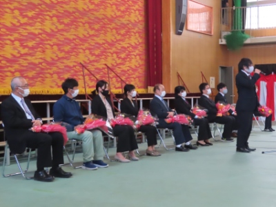 退職・転任される教職員お一人ずつからお別れのあいさつをいただきました。皆さんは長吉の子どもたちの頑張りに、期待をされていました。最後は、大きな拍手でお見送りしました。これまで、本当にありがとうございました。