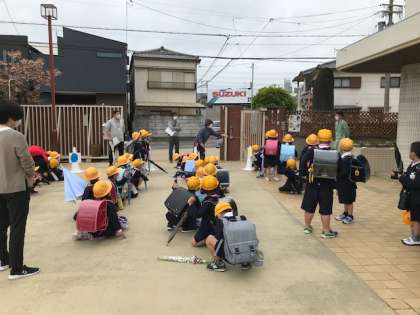 給食を食べて学校で過ごす時間が終わり、元気よく帰っていきました。