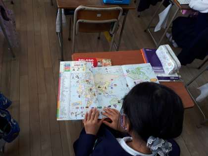 4月14日(水)2限、4年2組は社会科の学習でした。4年生になって初めて配付された地図帳の世界地図のページを開いて、いろいろな国のことをクイズ形式で調べました。その後日本地図のページを開き、大阪府がどこにあるのかを調べました。