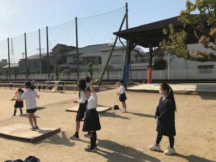 本校では、今年度めざす子ども像の一つとして、【こつこつ継続して取り組む 子ども】を掲げてます。現代の子どもは、「忍耐力がない」「我慢ができない」「すぐあきる」などと言われていますが、毎日、毎回、くり返しくり返し続けて取り組み、規則正しい生活を習慣化させることや、体力・運動能力の向上を体感させてあげられるようにと思っています。体育の学習の中でも、多様な動きの運動を取り入れることと<同じ運動を継続して取り組むこと>を意識するようにしました。