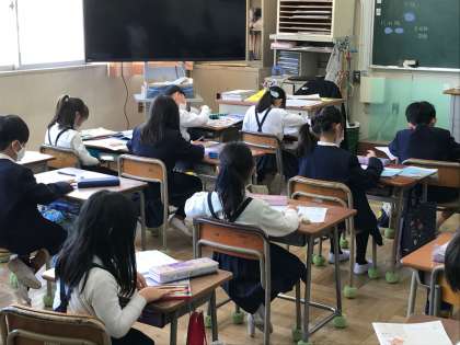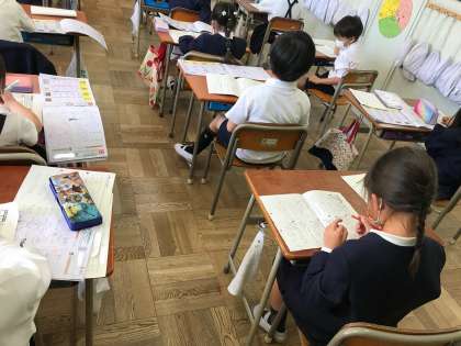 2年生は朝の学習課題だったプリントの答え合わせをしました。