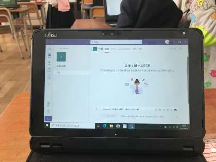 双方向通信Teamsの操作の仕方を学習しました。学級のこども全員で行うと回線が重たくて画面がスムーズに進まずに時間がかかりましたが、最後はみんなの顔を画面上で見ることができたようです。