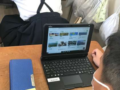インターネット回線の負荷をさけるため、学校では使用学年や学級を分散して取り組みをしています。