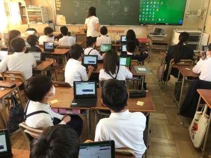 インターネット回線の負荷をさけるため、学校では使用学年や学級を分散して取り組みをしています。