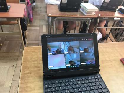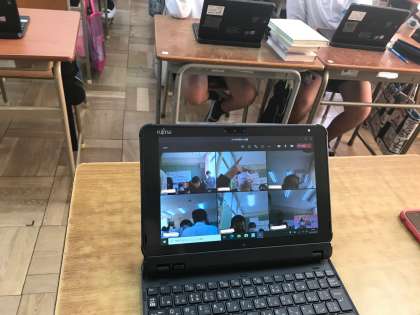 その後、回線がつながってお互いの顔がパソコン画面上に写し出されたときは画面をのぞき込んでいました。