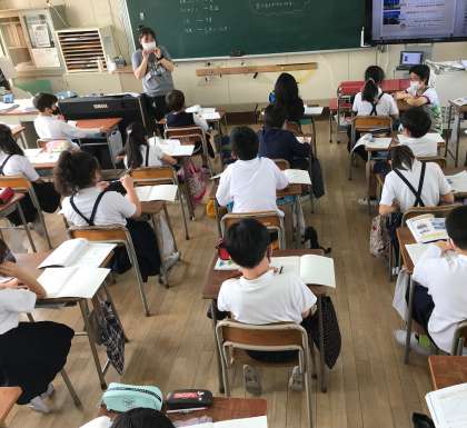 今日は、みんなで折れ線グラフについてグラフの読み取り方などを学習していました。