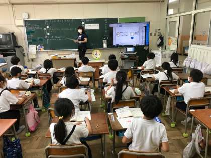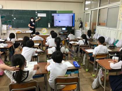 算数の時刻と時間の学習をしていました。学習用の大きなアナログ時計がありました。これを使って時間の動きを針を動かして確認することができます。