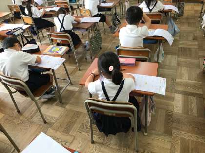 新しく出てきた漢字の学習です。まずは、正しい筆順で目の前に大きく手を動かして空書きをしていました。