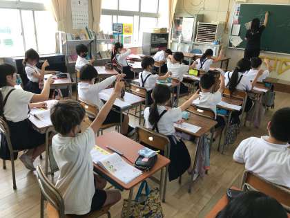その後は、みんなで一斉に空書きをして、手の運びが違っている子がいないか確認をしていました。