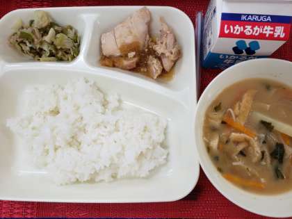 今日のこんだては、「ごはん、鶏肉のおろしじょうゆかけ、みそ汁、野菜いため、牛乳」です。