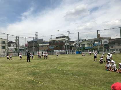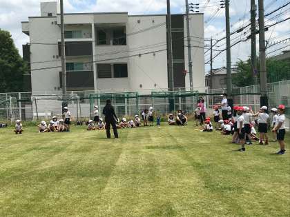 今日は芝生グランドでソフトボール投げの測定をしていました。