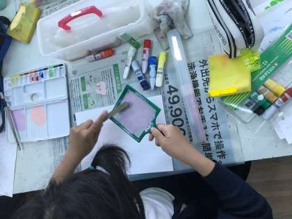 図工室で子どもたちが珍しい活動をしていたので、興味深く見ていました。
