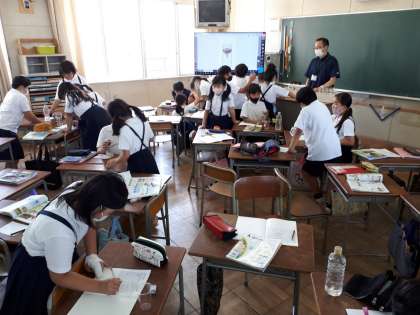 理科の学習の楽しみの一つは実験。校庭の土、砂場の砂、じゃりの3種類について、グループの友達と協力しながら、楽しそうに実験に取り組んでいました。