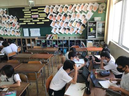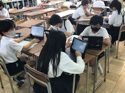 世界にはいろいろな状況の国があり、その中で子どもたちがおかれている生活環境について、グループごとにテーマを設定して、自分たちでそのことについて調べる活動をしていました。