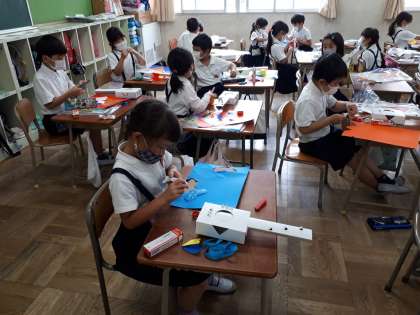 説明書を自分で見てどんどん進めていく子どももいました。先生が素敵な工夫を紹介していました。どんな作品に仕上がるか楽しみです。