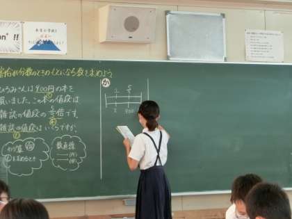 分数で表された割合の数を含む数量の関係をとらえて答えを求める学習でした。