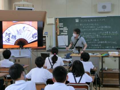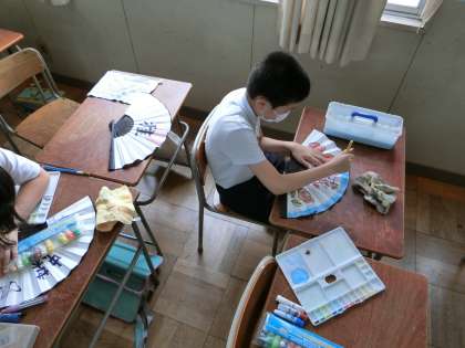 6年生は扇子に「和風」を意識したデザインをつける活動をしていました。