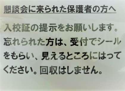 学校に来校される時は入校証をご持参いただき、校内では着用をお願いします。