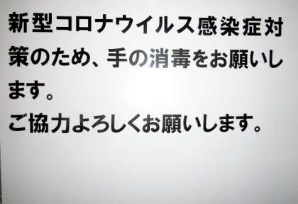 また、コロナウィルス感染拡大防止対策として、玄関にアルコール消毒を設置していますので、手の消毒をしてお入りいただきますようご協力ください。