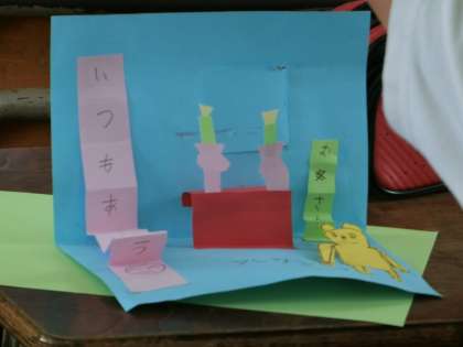 カードを開けると立体の飾りがしてある絵カードづくりを行っていました。