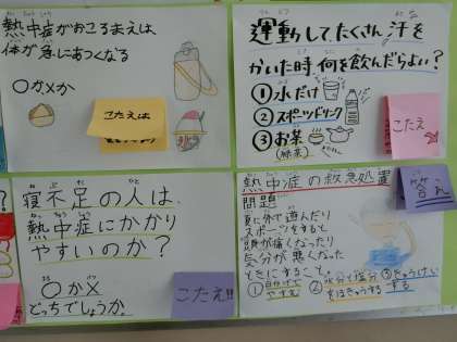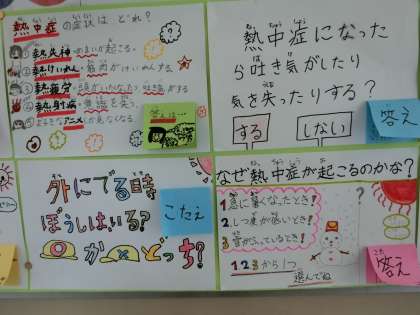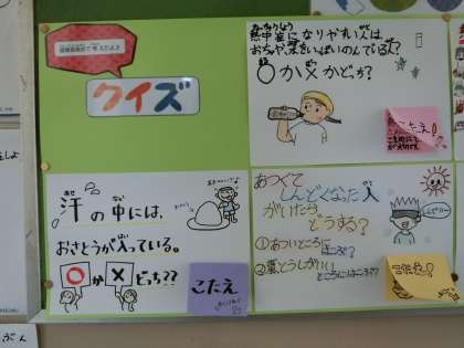 この暑い時期に気をつけないといけない熱中症について、健康委員会がみんなに知ってもらおうとクイズ形式でお知らせをしています。
